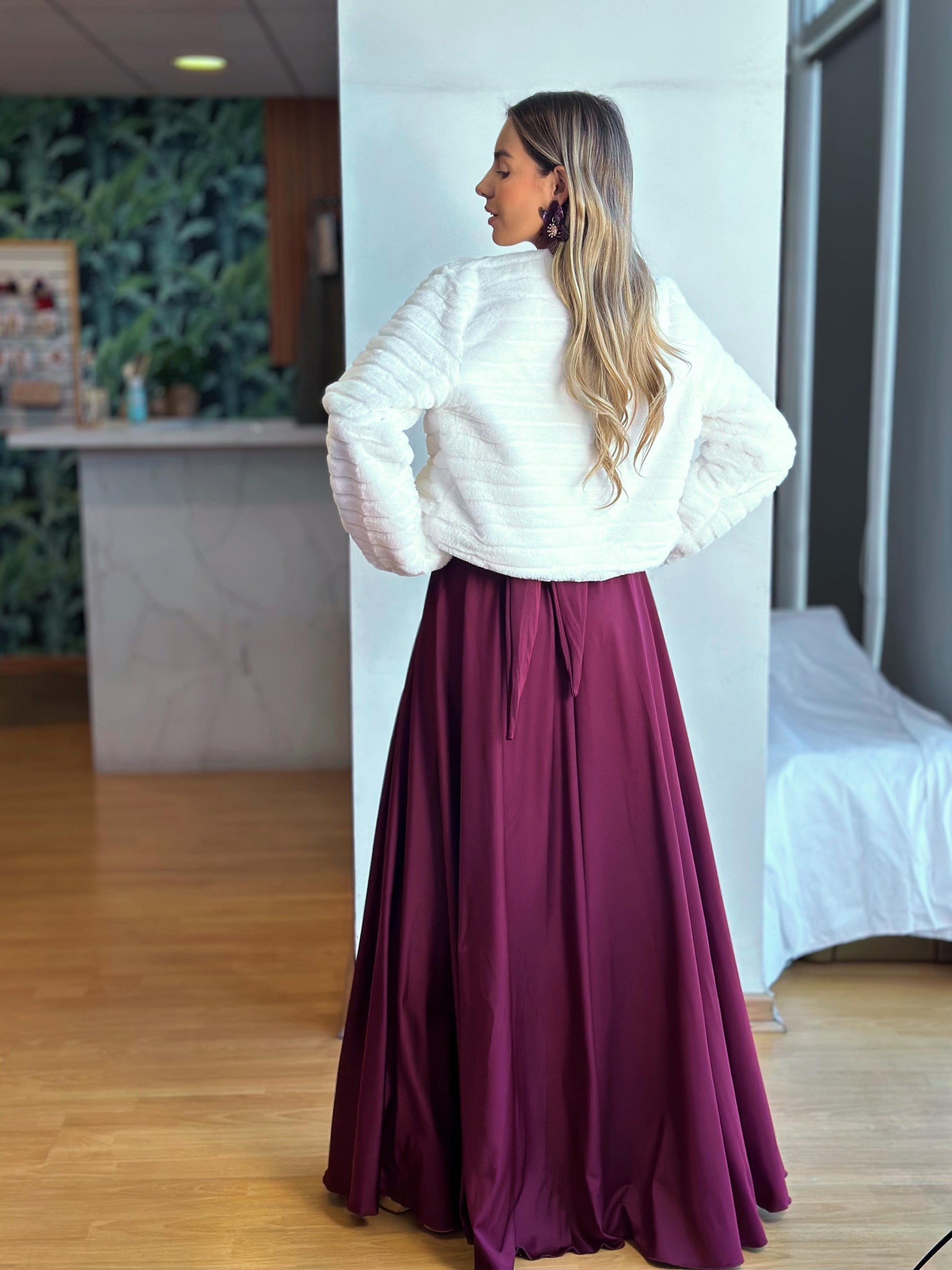 De textura suave y elegante, es una opción versátil que realza cualquier conjunto con un toque de glamour. Su talla estándar se adapta cómodamente a diferentes siluetas, brindando un ajuste favorecedor.